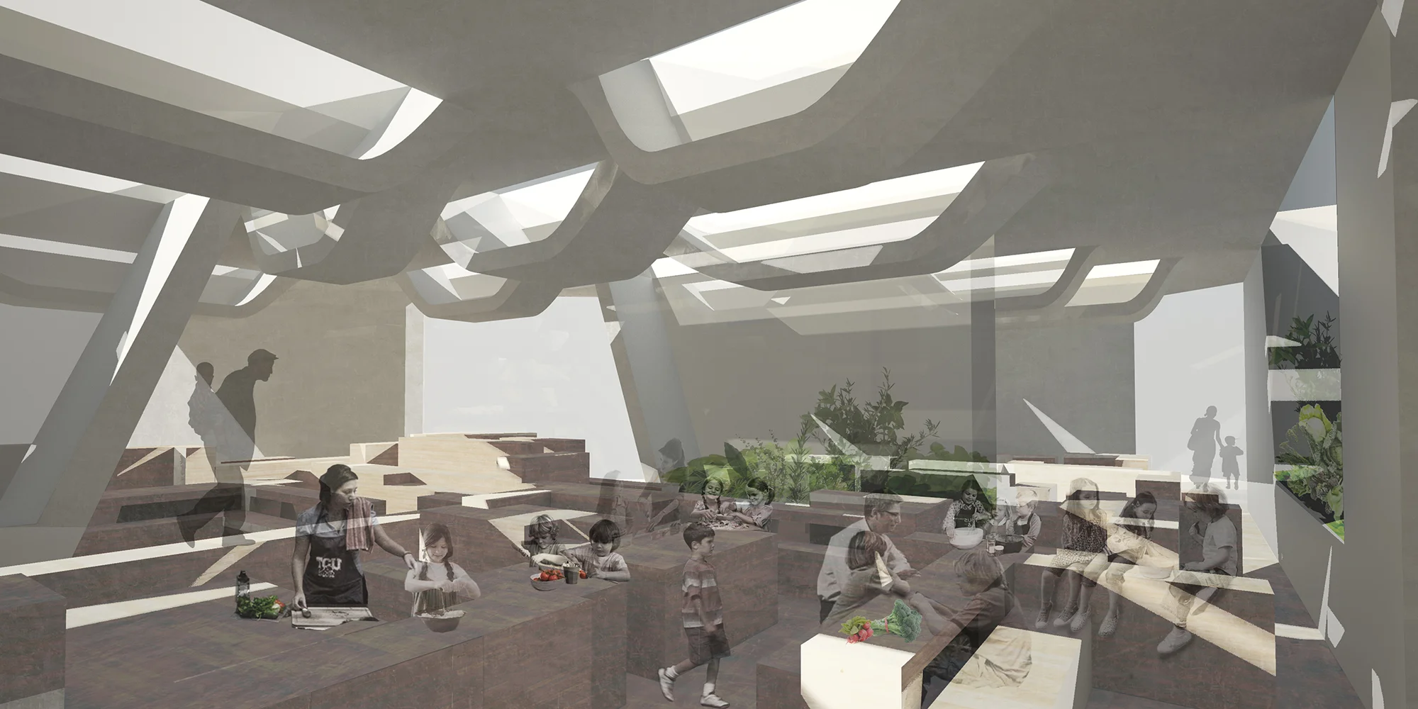 Cookery as a form of cultural production lacks an institutional and architectural representation in the modern city. Food as merchandise is omnipresent in supermarkets, markets and restaurants. Yet gastronomy as a participative art form, as an easily accessible, experimental activity is entirely under-represented. This project aims to carve out a place for food in the cultural landscape of our cities and manifest this in architectural form. The FoodLab contains teaching kitchens and a dining venue as well as(semi-)outside spaces for the cultivation of food.
